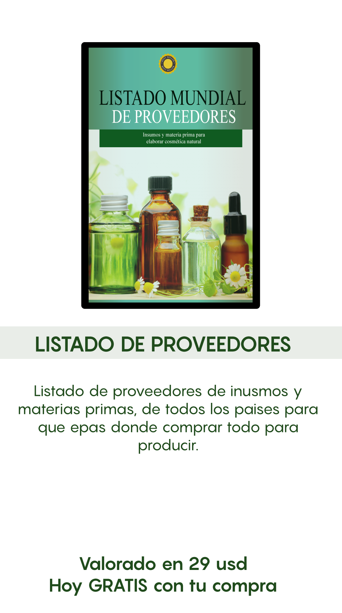 🌿 Obtendrás un Listado de proveedores mundial, para saber dónde comprar todos los insumos y materias primas en tu país.